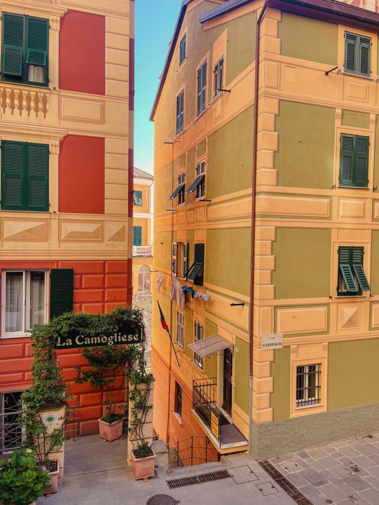 Camogli è uno di quei borghi che sembrano usciti da un libro illustrato. Case alte, facciate colorate e panni stesi al vento. Noi ci dirigiamo subito verso il cuore del borgo: il piccolo porto, forse uno degli spot più romantici di tutta la Liguria.