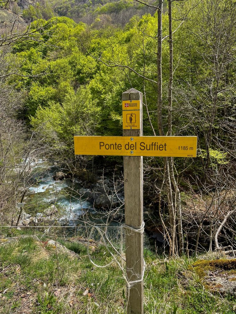 Abbiamo scelto un percorso panoramico che ci ha portati fino al suggestivo Ponte del Suffiet: un luogo sospeso tra natura e poesia, dove il verde è più intenso e l’aria più pulita. La salita ci regala fatica, ma anche una sensazione meravigliosa di libertà.